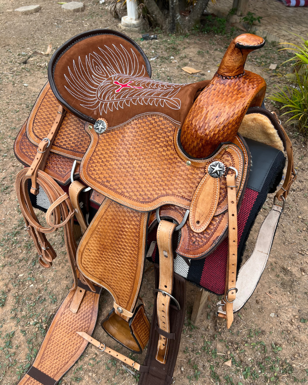 A Sela Prova de Laço Faith Edition Premium representa o encontro entre fé, tradição e excelência artesanal. Criada para cavaleiros que buscam desempenho superior, conforto e um visual marcante, essa edição especial foi inspirada na força e na determinação de quem confia em seu talento e na qualidade do que utiliza dentro da arena.