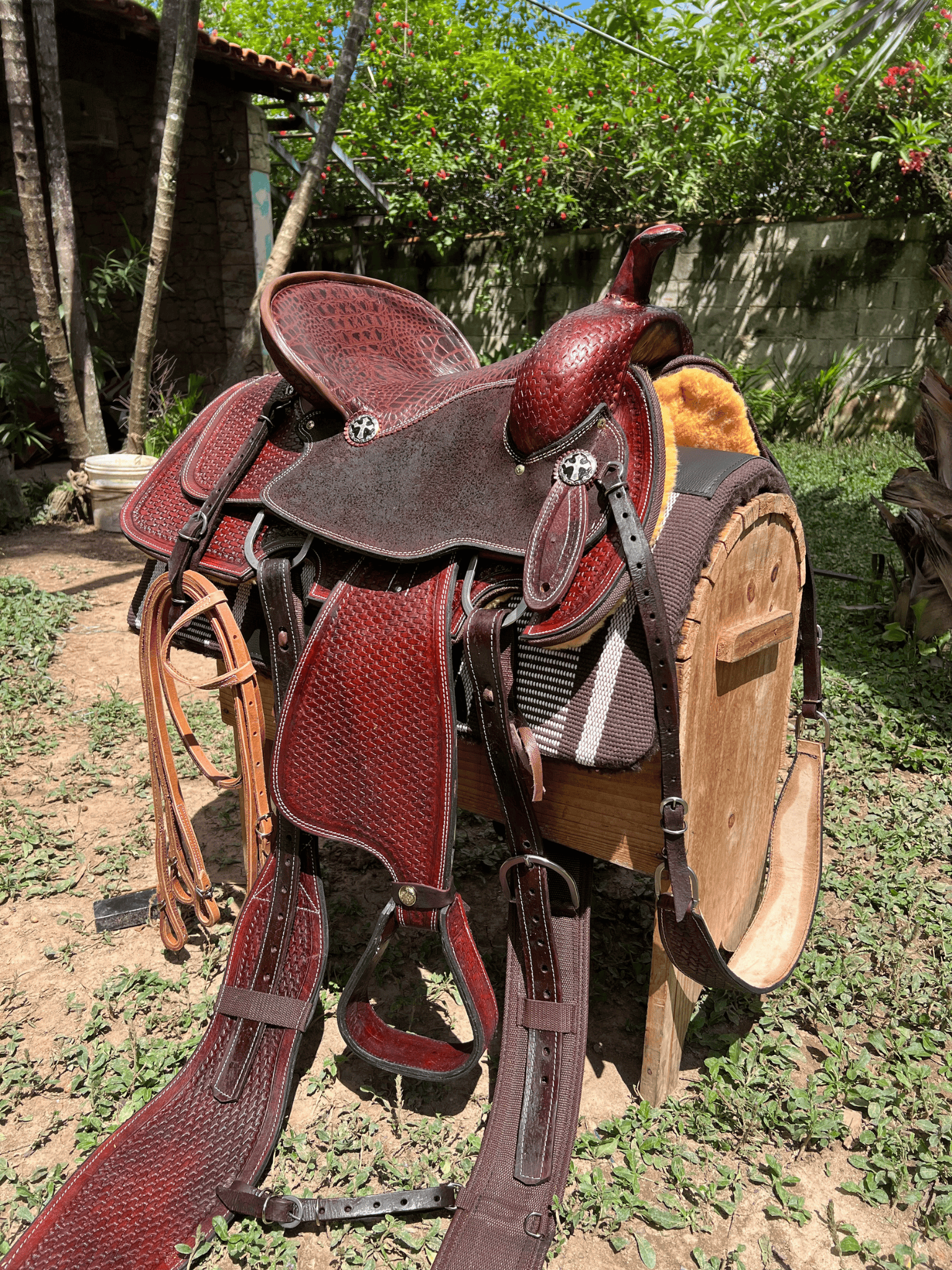 A Sela Ranch Sorting Espartano Red River Pro é o topo de linha para quem busca máximo desempenho, controle absoluto e presença dentro da arena. Desenvolvida para competidores exigentes, ela entrega o equilíbrio perfeito entre agilidade, firmeza e conforto, sendo ideal para provas intensas de ranch sorting.